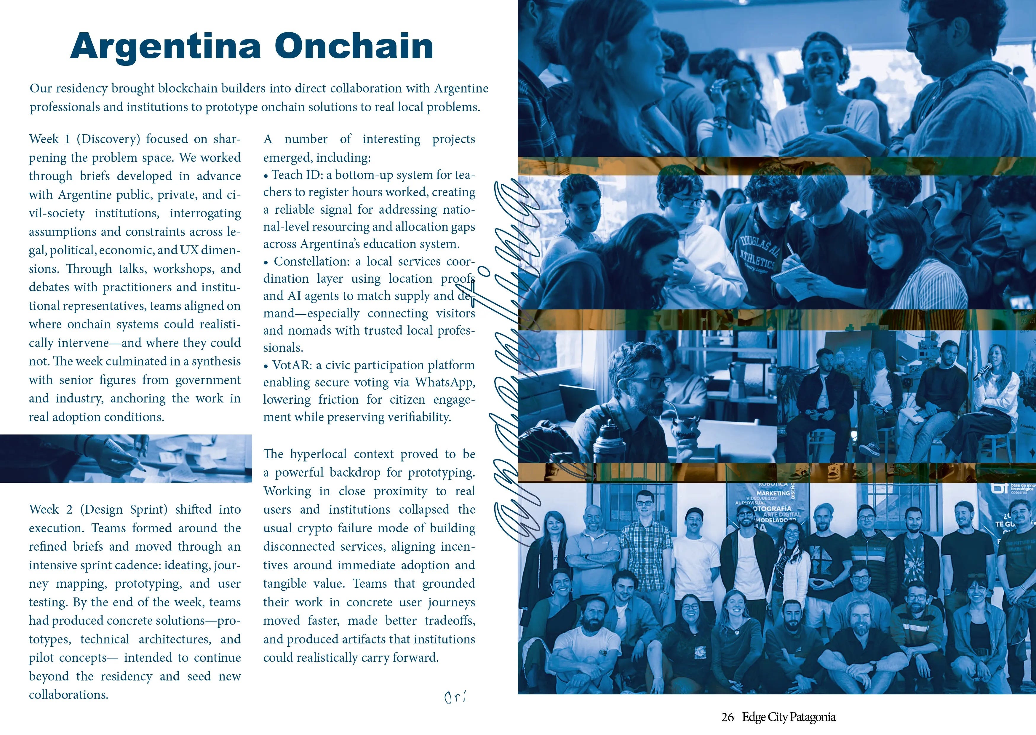 In february, an Edge City Zine was released - 95 pages of community-made stories, insights, and reflections from the month we spent together in the Andes, released on Punto Press. It’s a beautiful snapshot of the socio-political experiment that is Edge City (which recently caught the attention of the New York Times). And Argentina Onchain is featured alongside projects like Regen House, Agartha House, and the dAcc Residency.