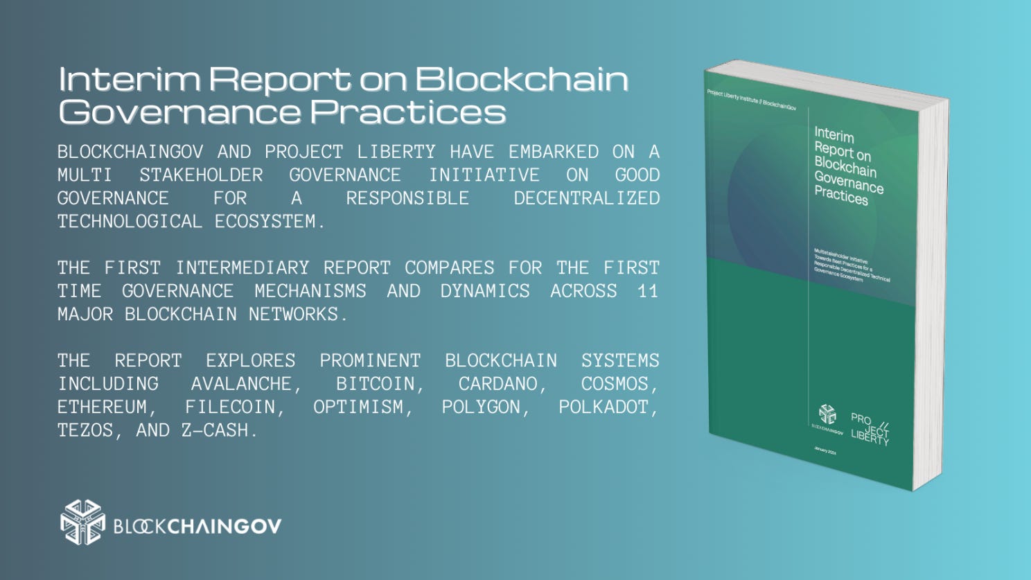 The main news of the month, as you may have seen on our social media channels (do you follow BlockchainGov on X?), was the publication of the Interim Report on Blockchain Governance Practices, in collaboration with Project Liberty. The report represents the first fruit of our multi-stakeholder governance initiative with Project Liberty. It investigates governance mechanisms and dynamics across 11 major blockchain networks including Bitcoin, Ethereum, Cosmos, and Optimism. You really shouldn't miss it. Read it here.